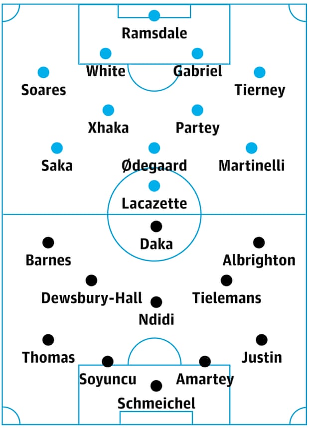 Травмированные: Эмиль Смит-Роу (?), Такехиро Томиясу (?) - Рикарду Перейра, Уэсли Фофана (оба - под вопросом), Тимоти Кастань, Райан Бертранд, Джейми Варди, Джонни Эванс