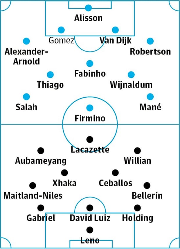 Травмированные: Алекс Окслейд-Чемберлен, Джордан Хендерсон, Алькантара (?), Алиссон (?) - Киран Тирни, Седрик (оба - под вопросом), Калум Чамберс, Габриэл Мартинелли, Пабло Мари, Шкодран Мустафи, Эмиль Смит-Роу