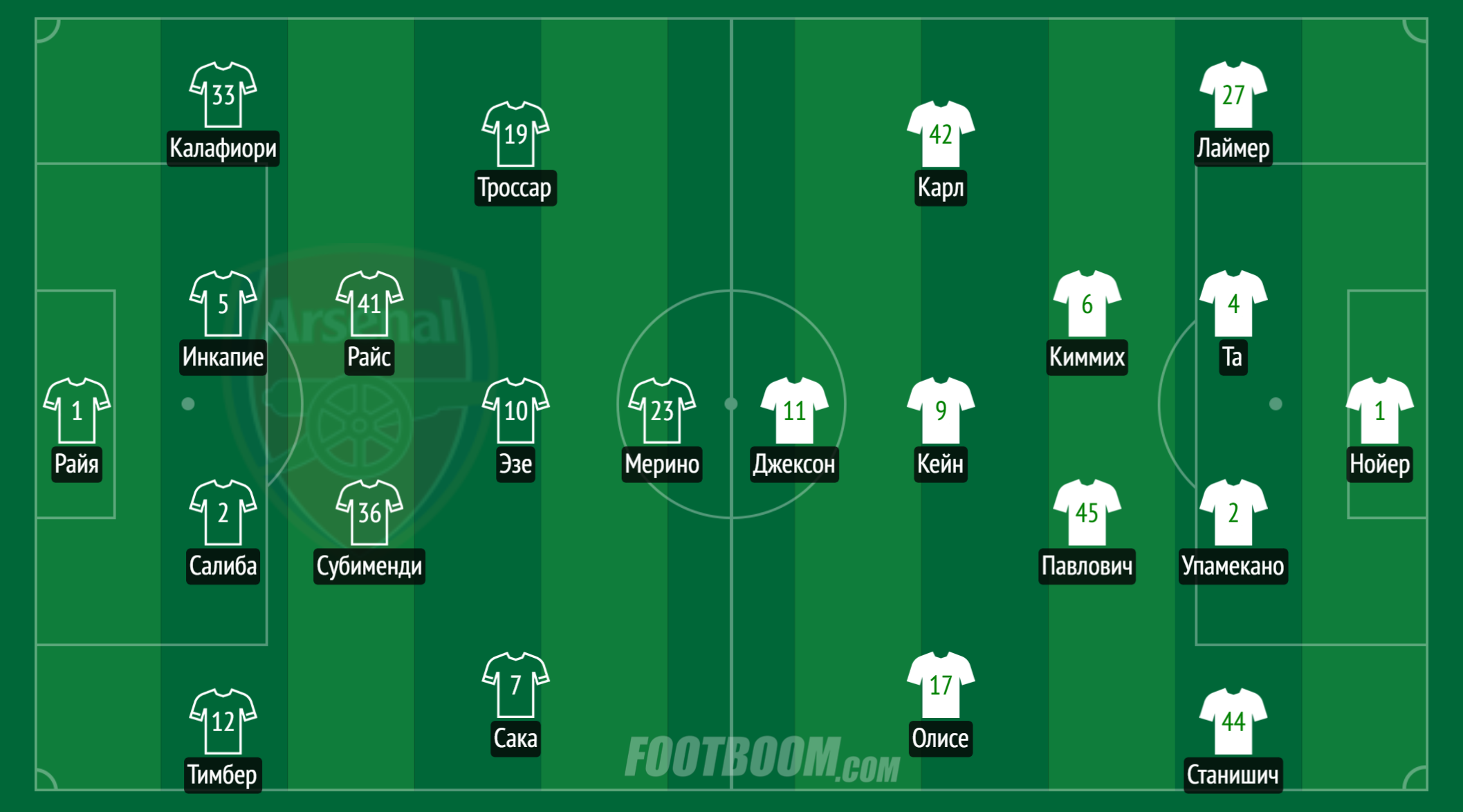 Травмированные: Кай Гаверц, Габриэл Магальяйнс, Виктор Дьокереш, Габриэл Жезус - Альфонсо Дэвис, Джамал Мусиала, Серж Гнабри