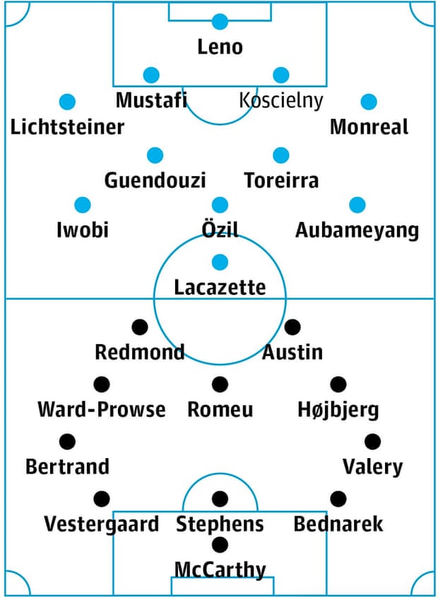 Травмированные:Лоран Косьельны, Эйнсли Мэйтленд-Найлс (оба - под вопросом) - Роб Холдинг, Дэнни Уэлбек, Эктор Бельерин - Майкл Обафеми, Стюарт Армстронг (оба – под вопросом), Марио Лемина, Дэнни Ингз
